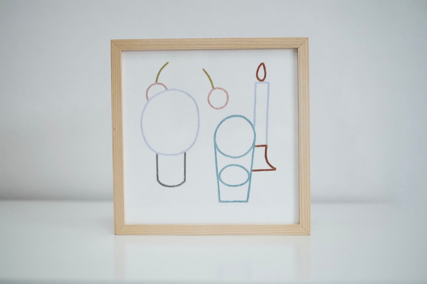 直置き、壁掛けどちらも可能な木製の額縁付きです。